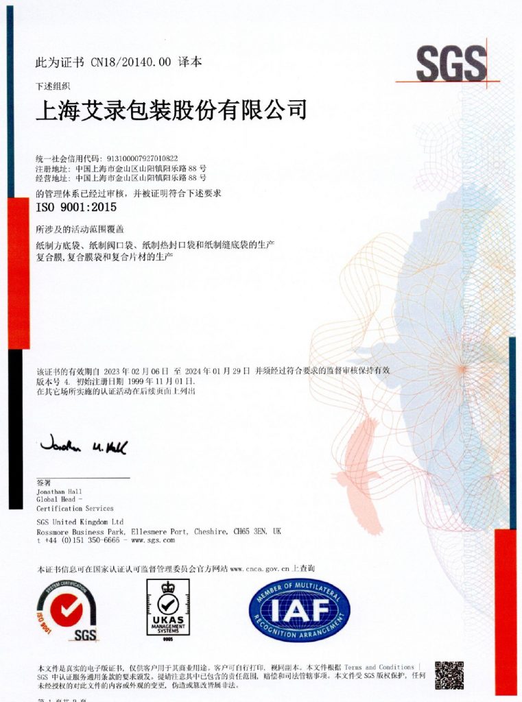 上海艾錄包裝股份有限公司(證券簡稱:上海艾錄 證券代碼:301062)成立于2006年,主要從事工業(yè)用紙包裝、塑料包裝及智能包裝系統(tǒng)的研發(fā)、設(shè)計、生產(chǎn)、銷售以及服務(wù)。經(jīng)過多年的持續(xù)發(fā)展,公司已由國內(nèi)領(lǐng)先的工業(yè)用紙包裝公司,成長為一家工業(yè)與消費包裝產(chǎn)品皆備的軟體包裝一體化解決方案提供商,并通過智能化、柔性化、定制化的生產(chǎn)能力,為妙可藍(lán)多、蒙牛、光明、雀巢、菲仕蘭、 陶氏、巴斯夫、沈陽化工、佰利聯(lián)、德高、立邦、東方雨虹、美巢等國內(nèi)外知名工業(yè)及消費類企業(yè)客戶提供包裝解決方案所需的相關(guān)產(chǎn)品。